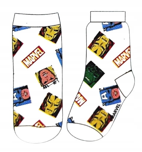 Niech Twoje dziecko cieszy się skarpetkami z motywem swojego ulubionego bohatera z serii Marvel. Każda para skarpetek ma inny wzór.