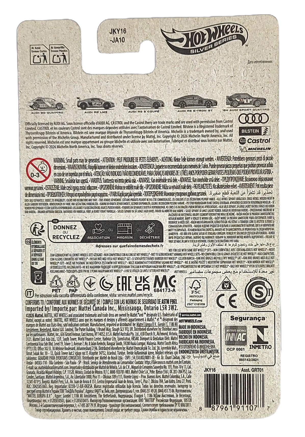Hot Wheels Silver Series Audi R8 LMS to rasowy samochód torowy w miniaturowej wersji Hot Wheels. Dynamiczna sylwetka, ogromne tylne skrzydło oraz wyścigowe barwy podkreślają sportowy charakter modelu.