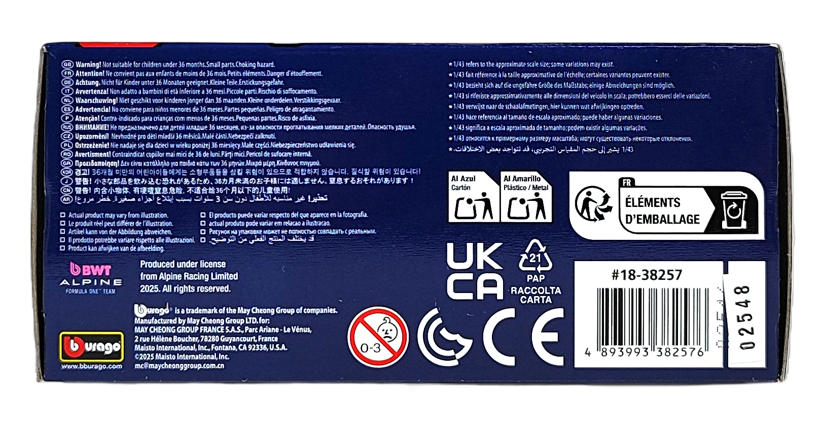 Bburago 1:43 BOLID F1 BWT Alpine Team A525 2025 Pierre Gasly