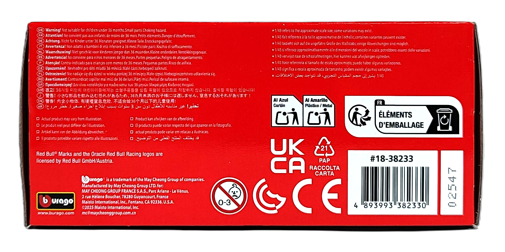 Bburago 1:43 BOLID F1 Red Bull Racing RB21 Verstappen Bahrajn GP