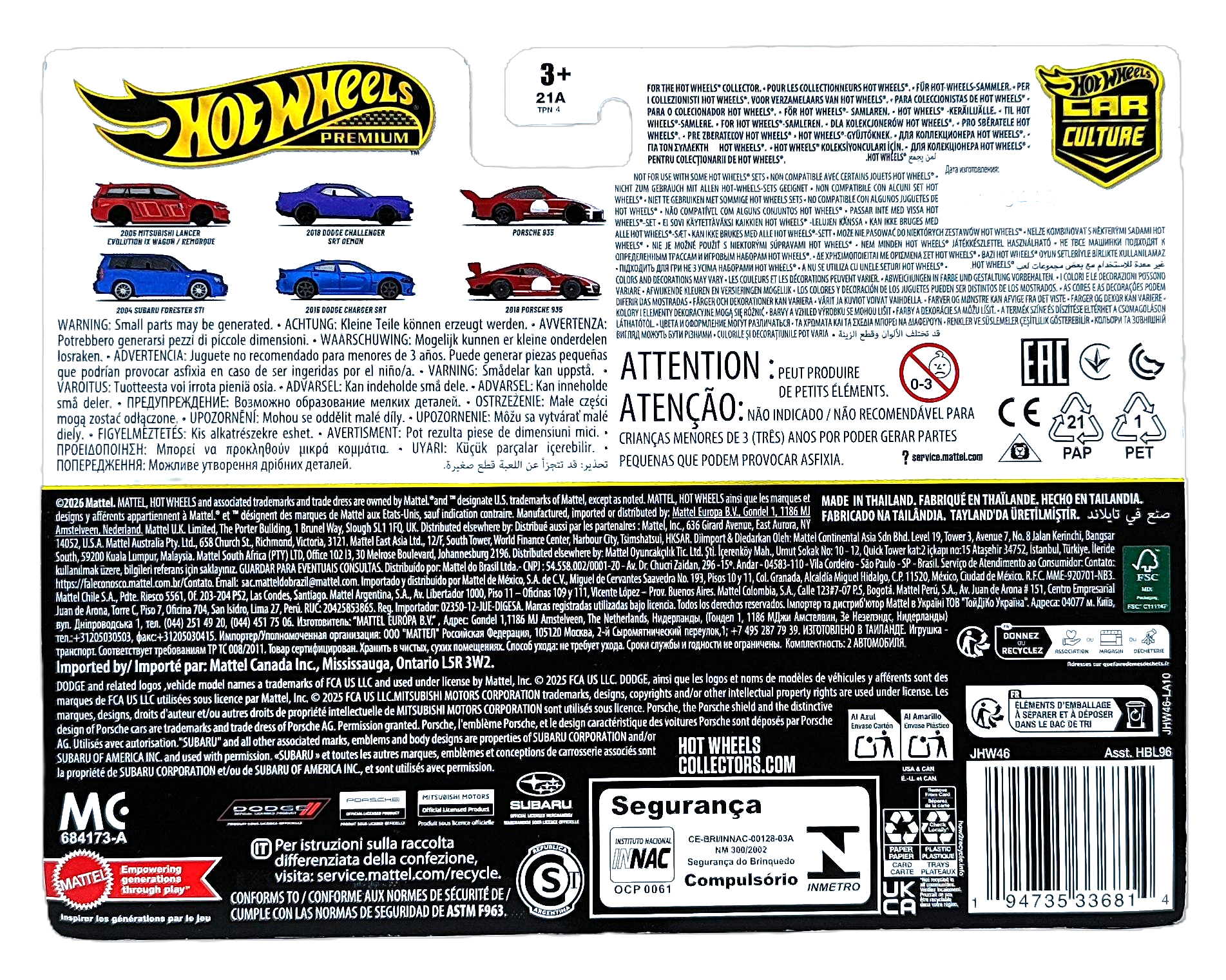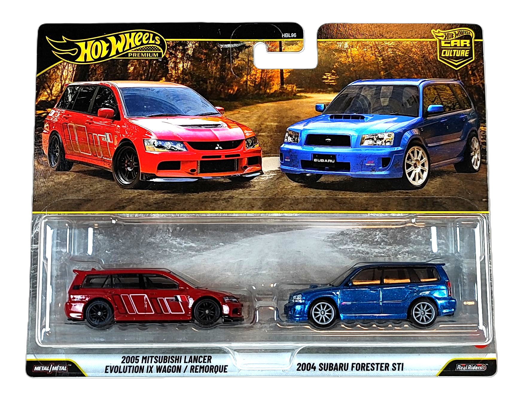 - Modele w zestawie: 2005 Mitsubishi Lancer Evolution IX Wagon/Remorque, 2004 Subaru Forester STI