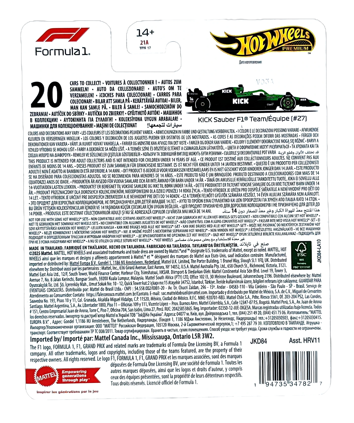 Hot Wheels Premium Formuła 1 KICK Sauber F1 Team 2025