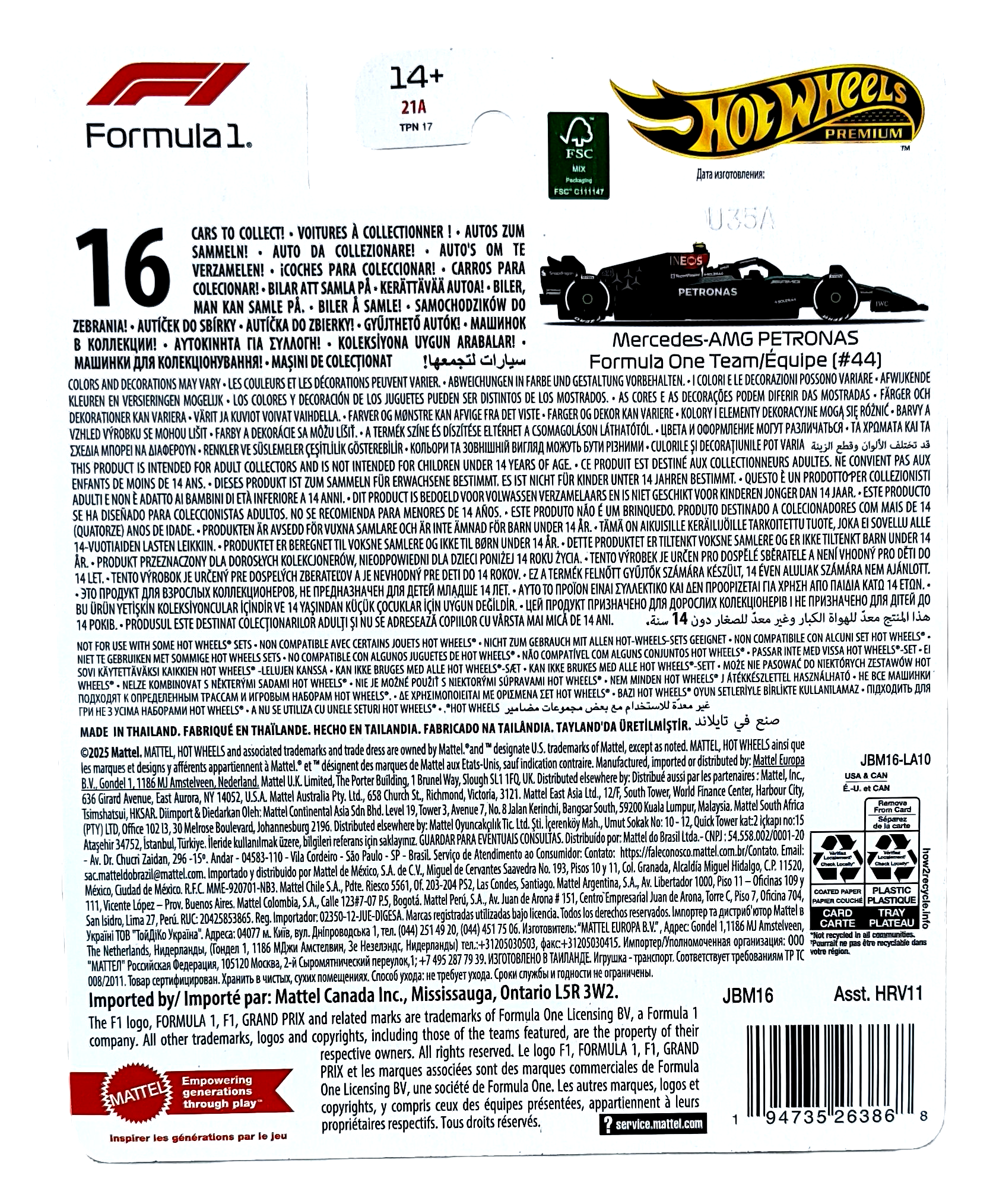 Hot Wheels Premium Formuła 1 Mercedes-AMG Petronas 2024.