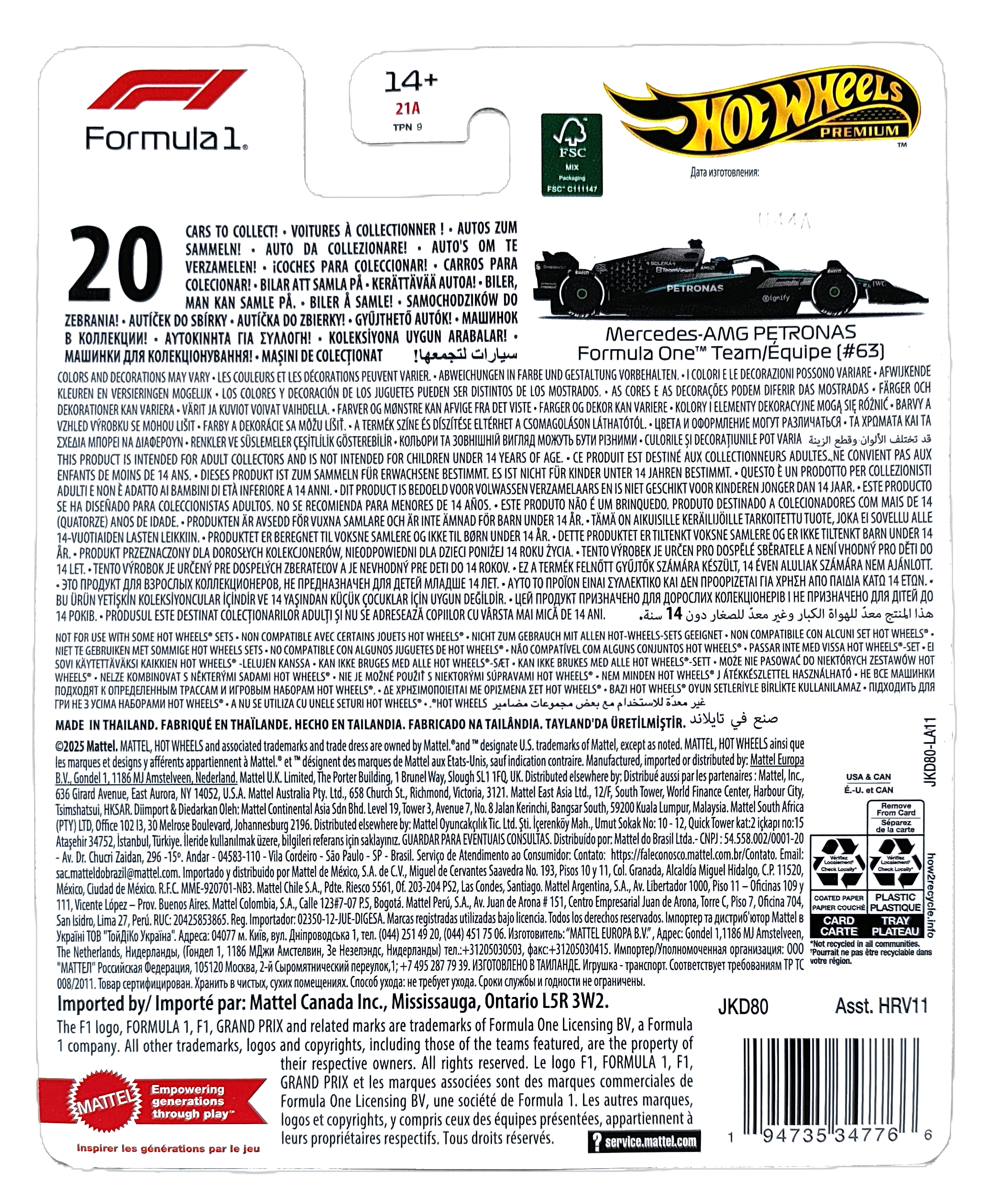 Hot Wheels Premium Formuła 1 Mercedes AMG Petronas 2025