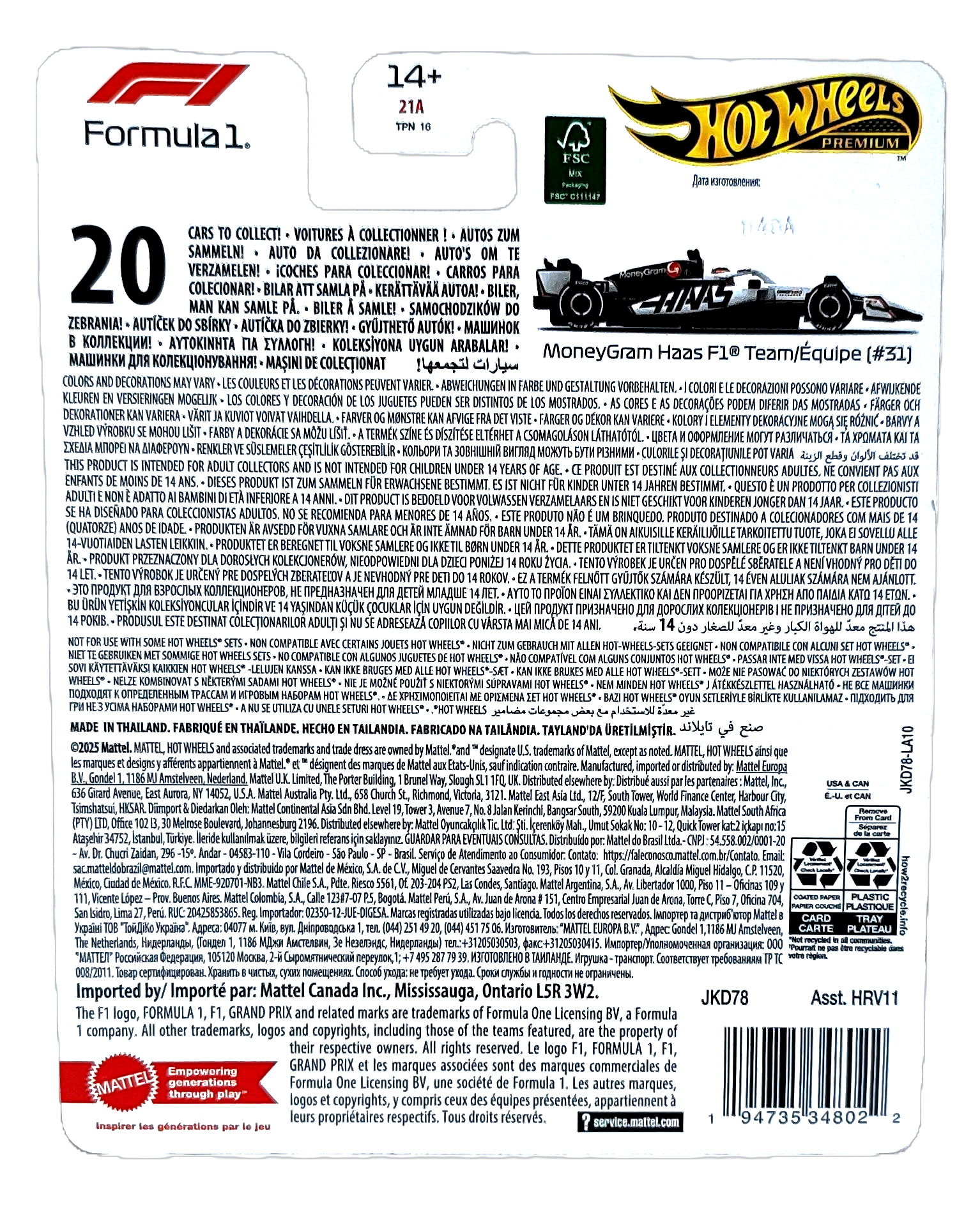 - Model: MoneyGram Haas F1 Team