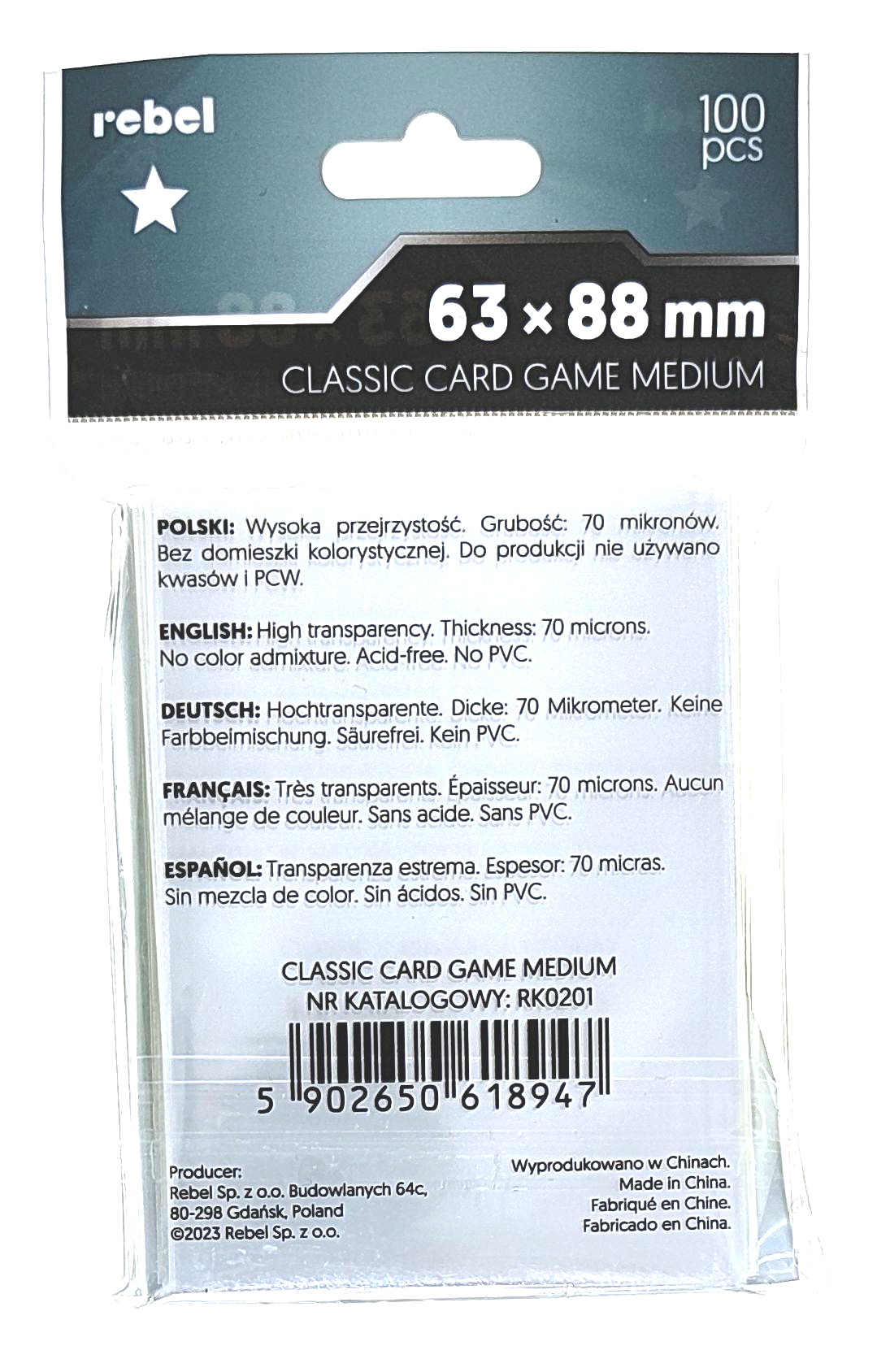 Koszulki na karty Rebel (63x88 mm) Corvus Classic Card Game Medium 100 szt.
