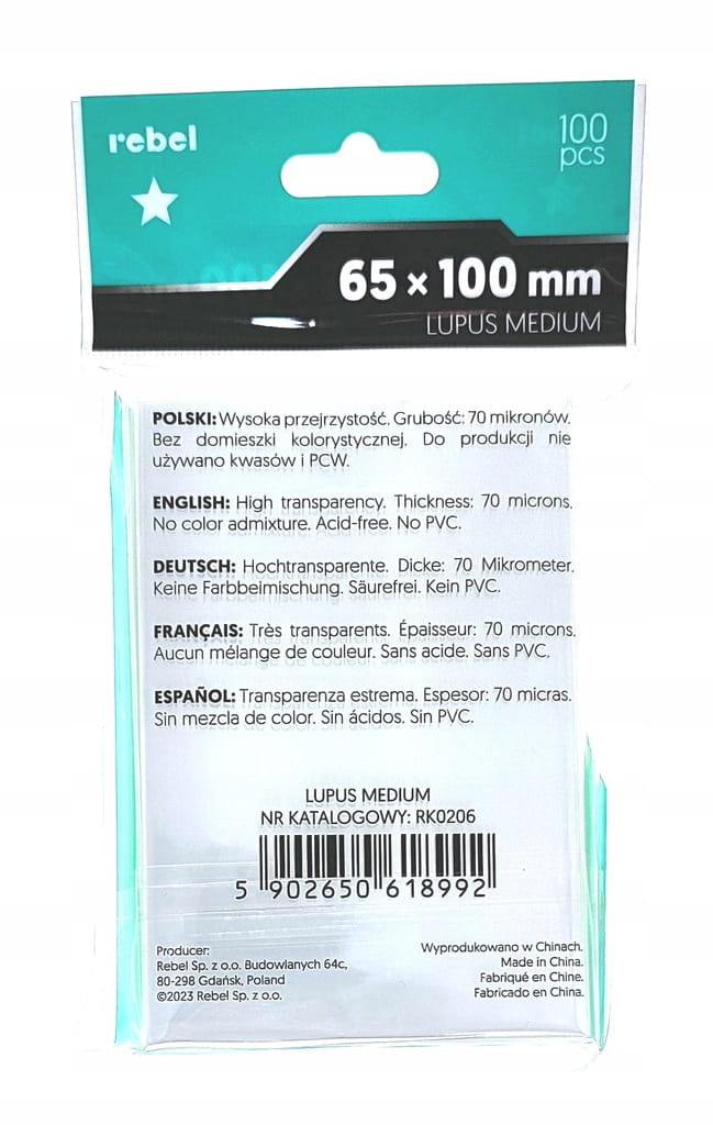 Koszulki na karty Rebel (65x100 mm) Lupus Medium 100 szt.