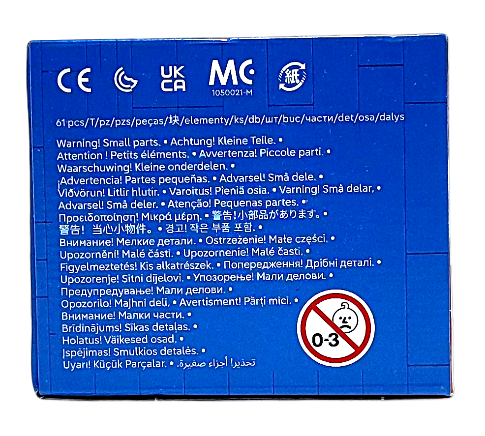 - Zawiera małe elementy, które mogą zostać połknięte. Ryzyko zadławienia, uduszenia.