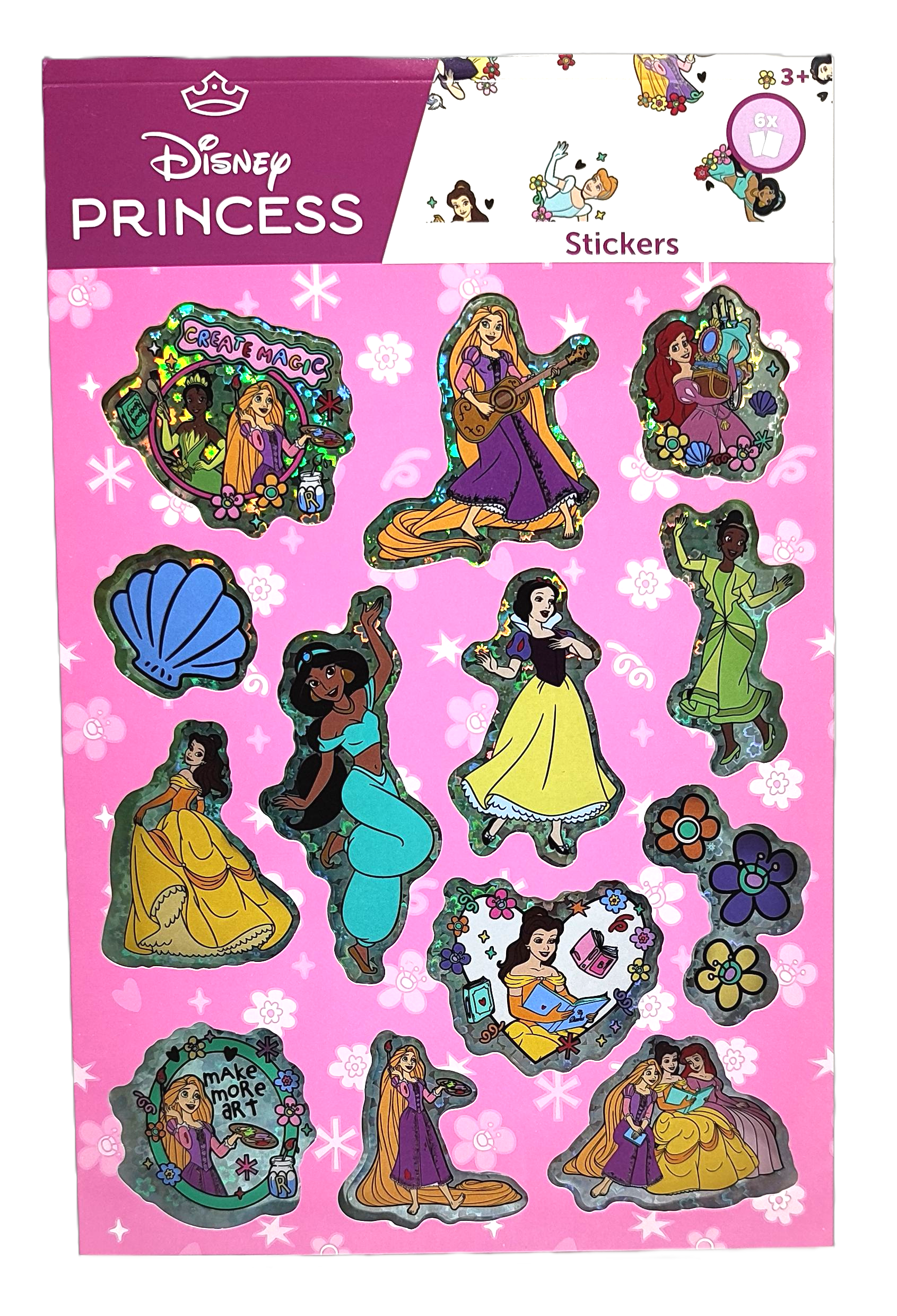Naklejki holo Disney Księżniczki - 6 arkuszy.