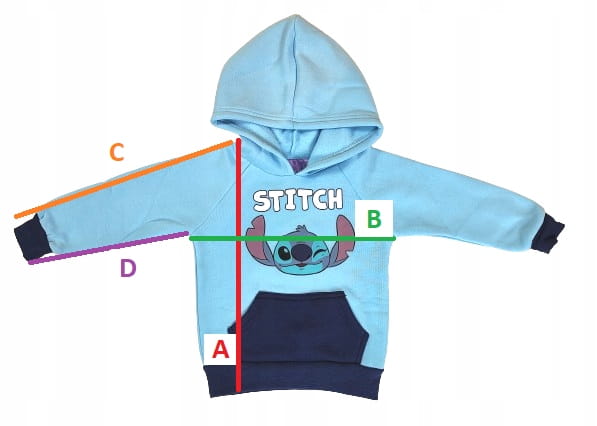A - 45,5 cm (długość mierzona od podstawy szyi do dolnej krawędzi bluzy)