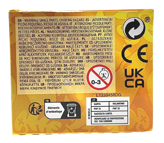 - Zawiera małe elementy, które mogą zostać połknięte. Ryzyko zadławienia, uduszenia.