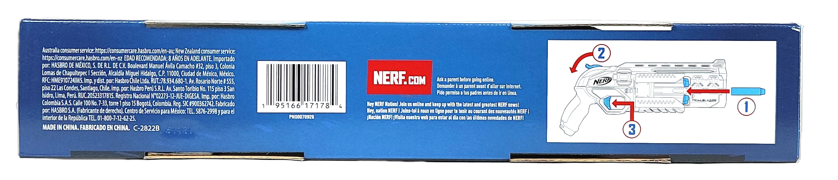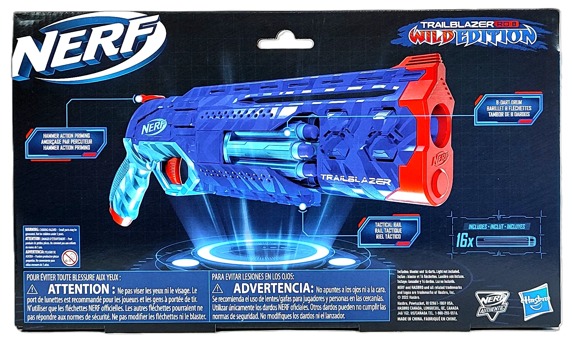 - Uwaga! Nie kierować w stronę oczu ani twarzy. Zaleca się noszenie okularów ochronnych przez graczy i osoby znajdujące się w zasięgu strzału. Używaj wyłącznie oryginalnych strzałek NERF. Inne strzałki mogą nie spełniać norm bezpieczeństwa. Nie modyfikuj strzałek ani blastera.
