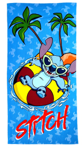 Ręcznik kąpielowy Disney Stitch pod palmami.