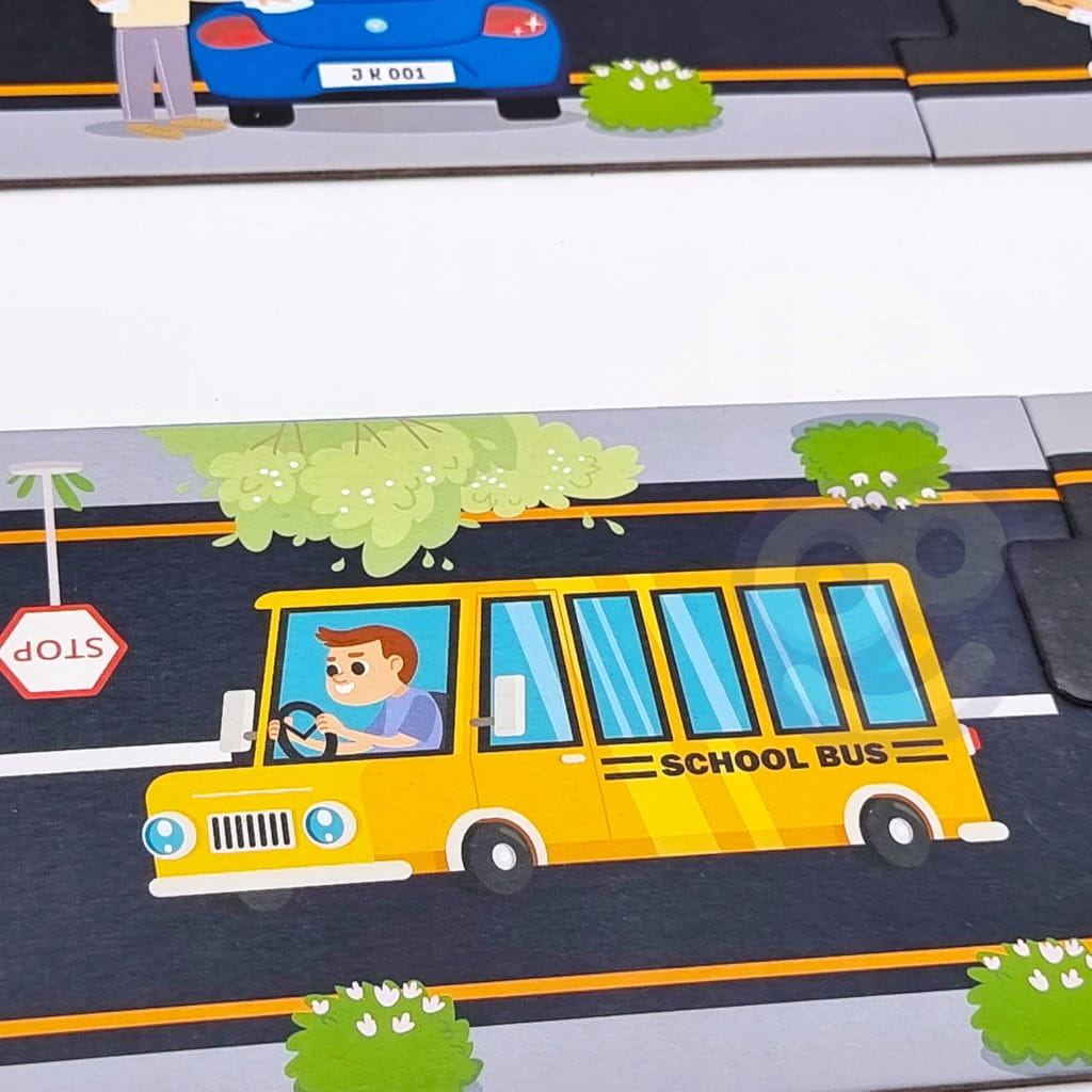 Wyjątkowe puzzle w formie elastycznych elementów drogi, które można ze sobą łączyć tworząc drogę pełną zakrętów, skrzyżowań itp.