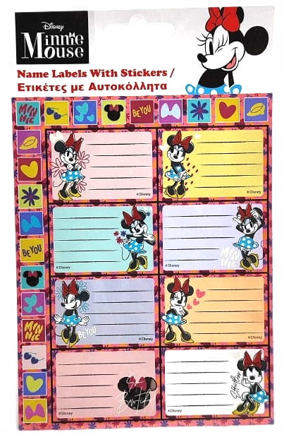 Zestaw naklejek etykiet na zeszyt Minnie 2 ark